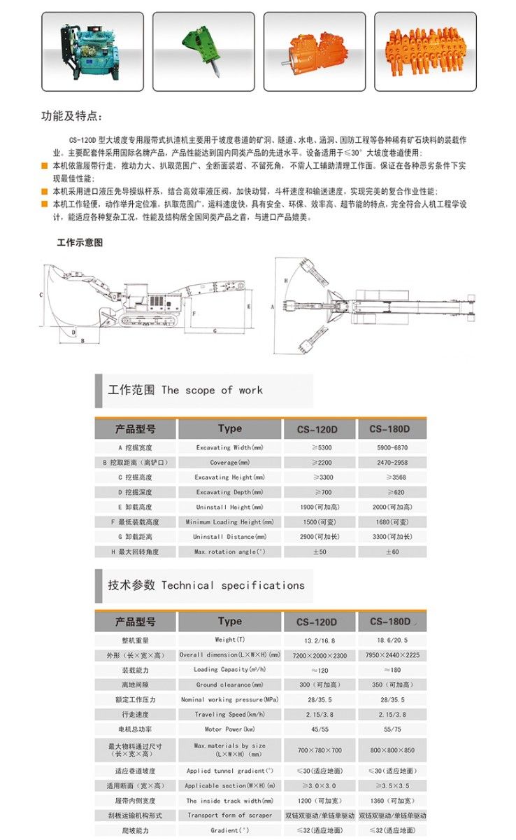 1. CS-120D大坡度專用履帶式扒渣機(jī)CS-120D大坡度專用履帶式扒渣機(jī)
